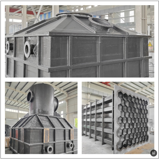 3w氣量熔鋅爐煙氣處理濕電除霧器生產(chǎn)完畢待交貨。該設(shè)備處理煙氣量≤30000m³/h,煙氣溫度≤80℃,煙氣成分為熔鋅爐煙氣,除霧效率>90%,設(shè)備負壓運行,運行壓力-5000Pa。